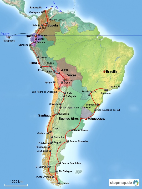 Route Am ersten August 2013 geht es los: Wir sagen Brasilien Adé und werden zehn Monate lang die Panamericana von unten nach oben, von Süd nach Nord bereisen. Der Routenverlauf Überblick Südamerika Nordamerika